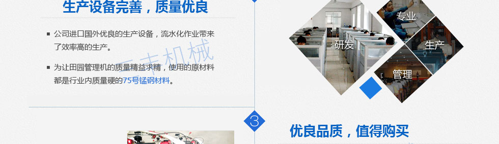 公司堅持綠色環(huán)保、智能制造的目標定位,大力弘揚工匠精神,微耕機 以具有豐富實踐經驗的高級工程師為主體的技術管理隊伍。